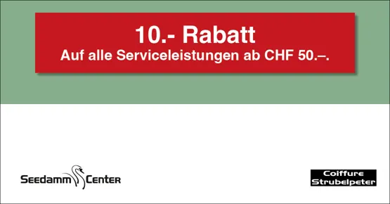 Der Gutschein ist nur einlösbar in unserem Geschäft im Seedamm-Center Pfäffikon SZ. Der Gutschein ist für Verkaufsprodukte nicht gültig. Pro Besuch kann nur ein Gutschein eingelöst werden. Barauszahlung nicht möglich.