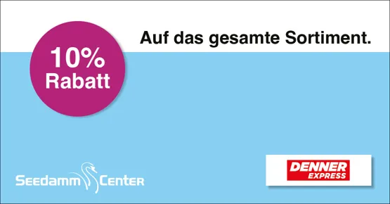 Auf das gesamte Sortiment. Gegen Abgabe dieses Bons in Ihrem Denner im Seedamm-Center Pfäffikon. Ausgenommen Spirituosen, Bordeaux 2018–2022, Tabakwaren, Gebührensäcke/-marken, Vignetten, Gutscheine, Geschenkkarten, Bons und Mobile Voucher. Gutscheine und Rabatte nicht kumulierbar.