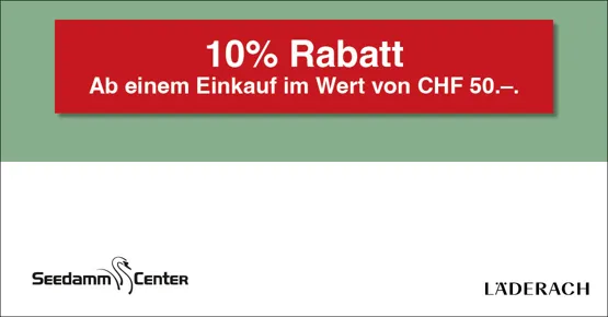 Gutschein nur gültig in unserem Geschäft im Seedamm-Center Pfäffikon SZ. Der Gutschein kann nicht mit anderen Vergünstigungen eingelöst werden. Pro Einkauf ist nur ein Gutschein einlösbar. Barauszahlung nicht möglich.