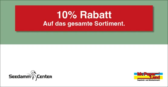 Auf das gesamte Sortiment. Ausgenommen sind Nettoartikel, Tintenpatronen, Toner und Geschenkgutscheine. Bon nur einmal einlösbar und nicht kumulierbar mit der Sparkarte sowie mit anderen Rabatten/Aktionen.