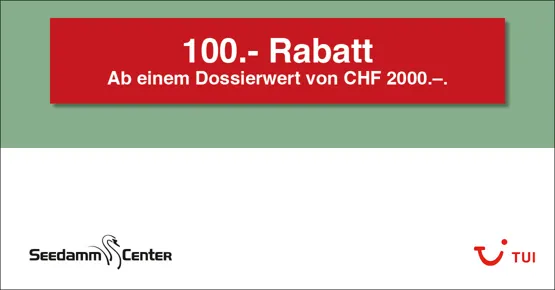 Gutschein nur gültig bis am 14. Dez. 2025 in unserem Geschäft im Seedamm-Center Pfäffikon SZ. Pro Buchung kann nur ein Gutschein eingelöst werden. Nicht kumulierbar mit anderen Ermässigungen und Vergünstigungen. Barauszahlung nicht möglich.