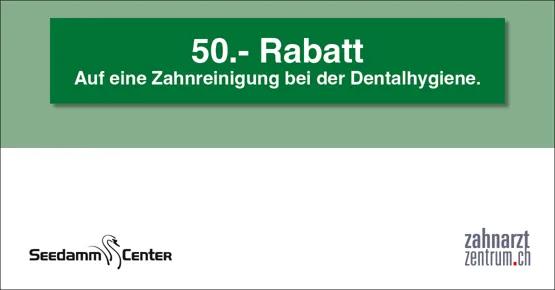 Der Gutschein ist nur im zahnarztzentrum.ch im Geschäftshaus Seedamm-Center in Pfäffikon SZ einlösbar. Nicht kumulierbar mit anderen Rabatten und Vergünstigungen. Pro Person kann nur ein Gutschein eingelöst werden. Barauszahlung nicht möglich.