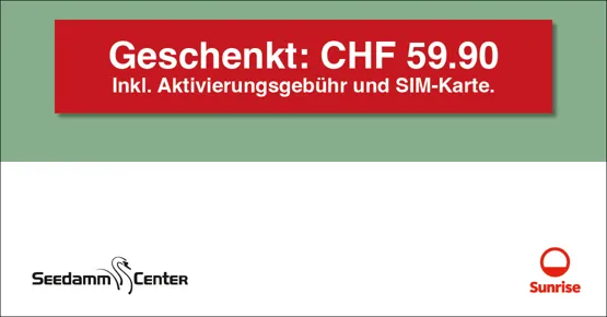 Nur einlösbar im Sunrise Shop im Seedamm-Center gegen Abgabe dieses Bons. Keine Barauszahlung möglich. Pro Person nur 1 Bon einlösbar.